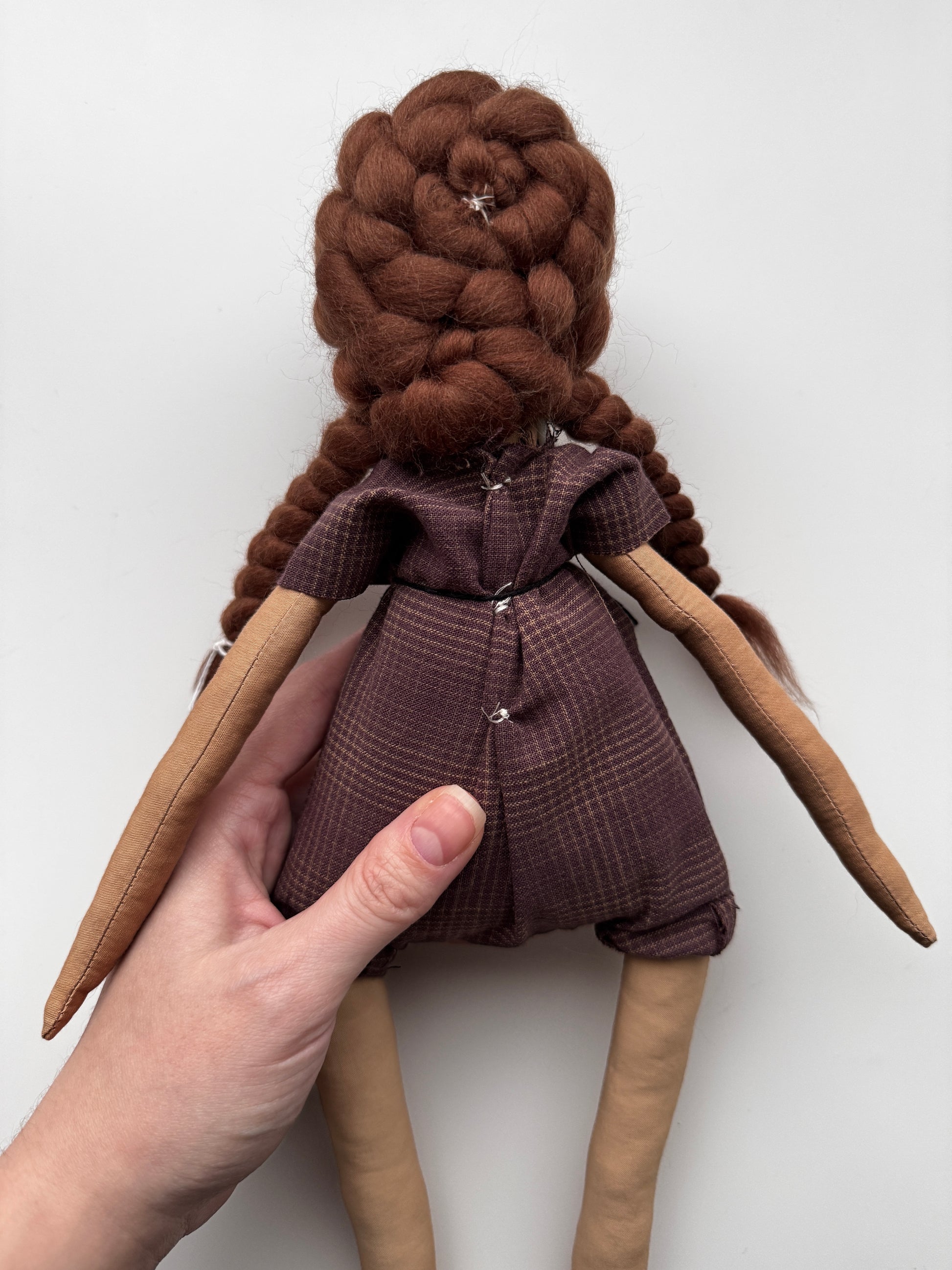 Doll Hair: varieties of wool, including Merino and Corriedale, and plant fibers, such as flax and hemp. The Merino and Corriedale wools I purchase are hand-dyed.